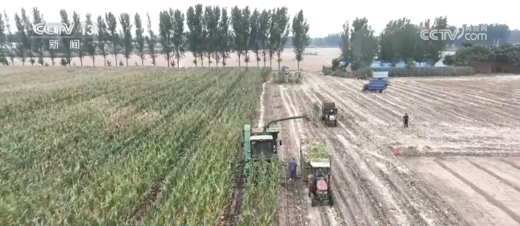 dingbian,shaanxi:青贮饲料玉米收获镰刀,为动物准备足够的“营养包”