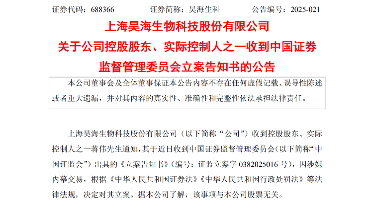 新闻记者Zhao En Wu Junlin报告根据上海Haohai Biotechnology Co,Ltd(688366.sh)的宣布,9月17日,股东和实际控制人员的控制权之一江韦受到了“股东和实际行政惩罚”的控制权,是“中国证券证券委员会”发布的”。 Haohai Biotechnology说,“先前的行政处罚通知”中涉及的话题是江外,涉及的事情与公司无关。 Haohai Biotechnology先前的宣布表明,江外没有参加公司的一天 - 至日运营和管理,此事不会对公司的Sun -Sun Sun -Sun运营,财务和财务产生重大影响。 “行政处罚的最终结果是基于中国证券监管委员会向江吉发出的“行政罚款确定”的结论。该公司将继续关注上述MA的发展根据相关法律和法规的规定和要求,及时及时履行信息的相关义务披露。 “海海生物技术说了这一消息。9月17日,海报新闻记者致电Haohai Biotech采访了江内,以详细介绍并回复了另一方,以指定的电子邮件地址进行采访。香港证券交易所于2015年4月以及2019年10月的上海证券交易所科学和技术创新委员会。根据Haohai Biotechnology的半年度报告,江港和您正在持有haohai Biotechnology的Haohai Biotechnology总共持有2.698年的Haohai Biotechnology与股东相关的OFIT为4.2亿元人民币,每年增加1.04%;运营活动产生的净现金流量达到6.49亿元,每年增长2.23%。 Haohai Biotech表示,尽管该公司坚持独立变更,研发继续增加,并专注于医学美容和眼科的创新产品线,但该公司坚持独立的变革,虽然保持稳定的绩效和巩固稳定增长和巩固的稳定增长。 2024年,Haohaisheng的研发投资达到2.39亿元,同比增长8.56%,研发成本的比例增加了8.86%。海报新闻记者(微信ID:Hibaonewssw)观察到,进入2025年后,公司的绩效发生了变化。在今年上半年,Haohai Biotech的营业收入达到了13.3亿元人民币,比去年同期减少了7.12%。其中,与去年同期相比,主要业务收入降低了7.52%。网p与上市公司的股东相关的Rofit为2.11亿元人民币,同比下降10.29%。在研发投资方面,今年上半年的SA R&D成本为984.01亿元人民币,从去年同期降低了269.993亿元人民币,降低了21.53%,R&D成本的比例为7.54%。 Sinabi ni Haohai Biotechnology na ito ay higit sa lahat dahil sa ang katunayan na maraming mga pangunahing proyekto ng R&D ng Kumpanya ay sunud -sunod na isinasagawa sa panahon ng pag -uulat sa huling yugto ng mga klinikal na pagsubok o pumasok sa yugto ng Pagrehistro在Pagsusuri,Na Nagreresulta sa Mga Kaugnay na Gastos sa R&d,Lalo Naang Mga Mga Paggasta tulad ng Direktang Mga Gastos sa pananalaliksik a pag -unlad ng paggawa at mga direktang sa sa paraka paggawa