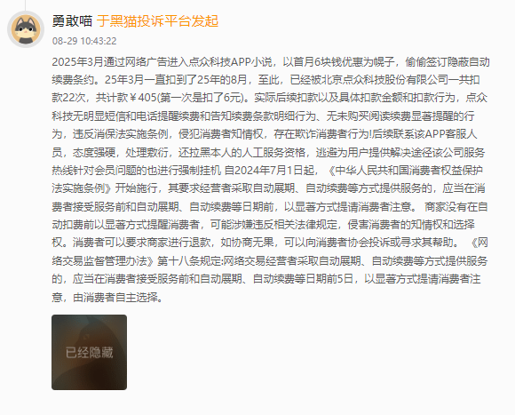 海报新闻记者李金山(Li Jinshan),太阳莱本(Sun Laibin),秦文(Qin Wen),杜郑明(Du Zhengmin)报告:“我只买了7天的试用期50美分。为什么AIQICHA应用程序每月减少我,而我还没有说?”最近,魏先生在审查该法案时从Jinan问。 “这很可怕!我不知道下次扣除的成本是多少。”公民李女士向海报实验室抱怨。他通过简短的视频平台广告进入了Dianzhong小说应用程序。第一个月的折扣价格为9元,价格在每周后上涨至19元。每月扣除量高达76元,并且在扣除之前他没有收到短信通知。 “我没有偶然看到该法案。我不知道我一直在减少费用。其他应用程序通常每月收费,但每周收费,这很生气!”女士。李在黑猫投诉平台上愤怒地说,记者注意到,许多用户的经验与李女士一样。用户“聪明的Meow” SaiD:“发现doong广告点击的小说被发现在近一年后不规则地扣除,每两三天或三天或一周都会扣除19元的元素。从2024年11月到现在,总减少了1,052.9元的总数是1,052.9元。显然,我没有收到任何短信或电话的互联网。应用程序已经启动了会员订阅技术,例如“连续连续的每月订阅”和“首先打折的月亮”,通常是在受到“低价测试”影响后诸如自动更新之类的诸如自动续订之类的,每周的量减少量减少了每月的费用超过每月的费用,并且不超过一个SMS提醒,并且会更改的变化,并且会更改的变化,并且会更改的变化,并且可以改变范围,并且可以改变范围。为了响应2024年3月19日的这种消费陷阱,“消费者保护Protec正式引入并清楚地指出,该法规将在当年的7月1日进行。法规直接指出了问题的主要疾病,并且确定,如果操作员通过自动扩张,自动续订等提供服务,那么他或她必须在接受以前的策略中,以使其在重要的方向上履行,并在重要的方向上进行了服务。实施,某些应用程序仍有争议和投诉,海报实验室对成员的13个应用程序的续订机制进行了深入分析,包括生活,音乐,办公室和办公室服务,以及收听书籍的测试:音乐类别:音乐,QQ Music,Migu Music:kugou Music,w words words worpor,w word,w word word word word worpor,w word,w word,w word for worpor word for words word word for words word word w。 Dianzhong Novel Life Service类别:Baidu NetDisk,Zhihu,aiqicha,国家永久日历,轻便禁食日。谁隐藏了最深的自动续订?海报实验室评论发现,具有“隐藏”更深自动更新的应用程序包括NetEases Cloud Music和喜马拉雅山脉。 NetEase云音乐的乙烯基VIP激活页面显示“ 1元开放成员”,上面的“连续连续每月订阅”单词,下面的红色字母促进了“每月15元的自动续订”。在单击“ 1元元重激活”之后,系统弹出窗口鼓励您阅读“自动续订协议”和“会员服务协议”。继续后,该页面显示了付款价格,服务名称等,并且服务的内容指出:“成员将在到期日之前的第二天自动续订,并且如果关闭,会员将不会更改。”值得一提如果没有手动将其滑动,就不会被Gumst找到。激活后,该应用程序还将在指导SVIP升级方面优先。返回普通会员页面需要Manu多次移动。喜马拉雅有四种类型:VIP,VIP Platinum,VIP儿童和SVIP大师班的成员。对于VIP铂金的成员来说,低于正在进行的每月/周期/年选择的“自动更新”意识。您需要单击“颜色文本”中的“购买说明”以弹出,例如“第三个月恢复自动续订为30元/月”,并且信息深度隐藏了。在更新,Kugou音乐,QQ音乐,Baidu NetDisk,Zhihu,aiqicha,aiqicha,wps,dianzhong小说和其他软件上都使用目标眼来支付第一个月/第一个折扣问题(例如,“ 1元到达1元”和“第一个月”和“第一个月的9.9 Yuan”,但在下个月的价格上不仔细检查)虽然太阳-Fasting会自动更新,续订价格没有标记。这很明显的标签是米瓜的音乐和懒惰的人正在听这些书。每月订阅,12个月,6个月,1个月等,并且没有连续的年度/时间 - 时间choicen 10 yuan每月付款,您必须审查“会员服务协议”和“自动续订服务协议”才能继续进行。付款过程还需要在出现“付款前激活”按钮之前手动激活自动续订。如果没有出现,则仅显示“付款”按钮可以产生第二个确认过程。 Migu音乐接口Migu听力会员有六个选择:正在进行的每月/期/年,12个月,3个月零1个月。其中,在正在进行的月度(包括期间/年)的付款下,有一系列小单词,“自动更新”的四个单词改变了颜色,这是非常明显的。懒惰的人的界面界面是最负责任的人E用于提醒机制?谁最安静? SA提醒机制,Zhihu,喜马拉雅山(VIP成员),Aiqicha等的条款清楚地通过现场消息或短信发布了该协议续订前5天; Baidu Netdisk,国家永久日历,光线的阳光,Kugou Music等尚未清楚地解释提醒机制。就购买过程而言,大多数应用程序要求用户在购买前审查协议,并且在未经用户同意该协议的情况下,每天的禁食将直接跳到Apple Pay。通常,与“以有意义的方式履行提醒义务”规定需要相比,该应用程序的自动更新机制需要根据价格透明度,提醒机制和取消便利性进行操作。某些应用程序(例如Zhihu和Migu Music)在某些链接中表现良好,但是大多数应用程序仍然通过视觉设计,页面布局,协议内容等削弱了基本信息导致可以在没有足够知识的情况下完成购买的用户。海报实验室建议在订阅,定期定期订阅状态之前仔细阅读用户,并避免不必要的扣除。